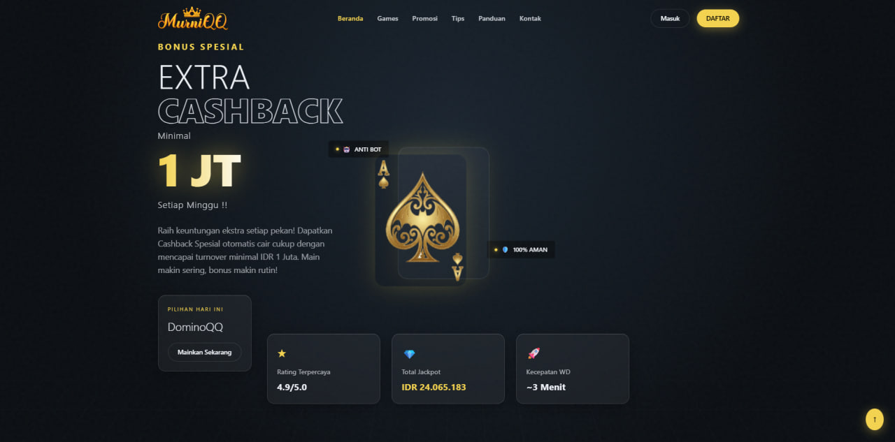 Raih keuntungan ekstra setiap pekan! Dapatkan Cashback Spesial otomatis cair cukup dengan mencapai turnover minimal IDR 1 Juta. Main makin sering, bonus makin rutin!